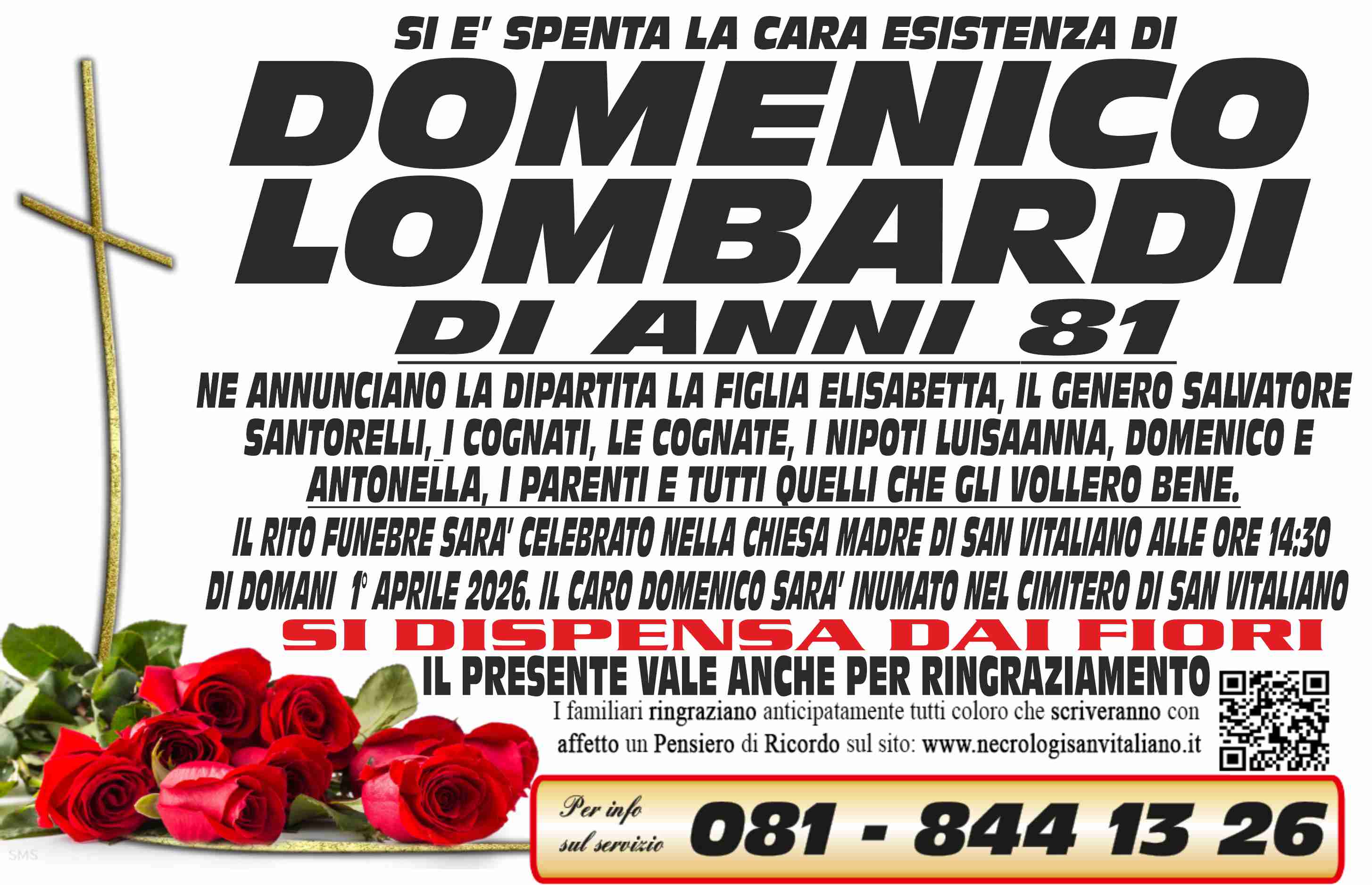 I familiari ringraziano anticipatamente tutti coloro che parteciperanno alla cerimonia funebre e tutti coloro che scriveranno con affetto un Pensiero di Ricordo.